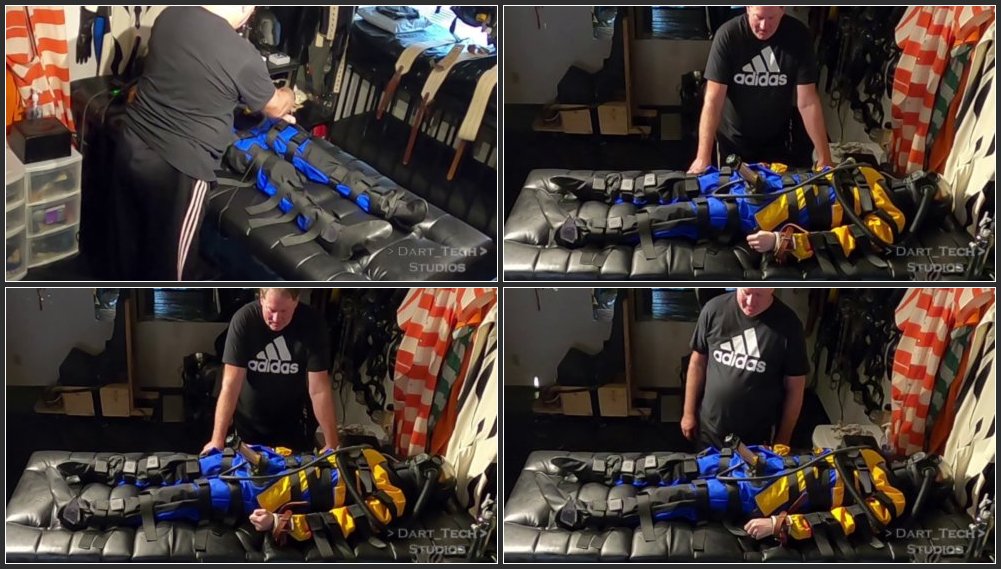 WetSuitJay had a devious grin on his face as he gazed at Dart_Tech, still strapped tightly into the restraints. The previous experience with the Venus had left Dart aching for more, and Jay was more than happy to oblige. He retrieved the infamous device and expertly attached it to Dart’s already sore cock, securing it in place. Dart let out a long, low moan as the cool metal touched his skin, the familiar sensation sending shivers down his spine.
