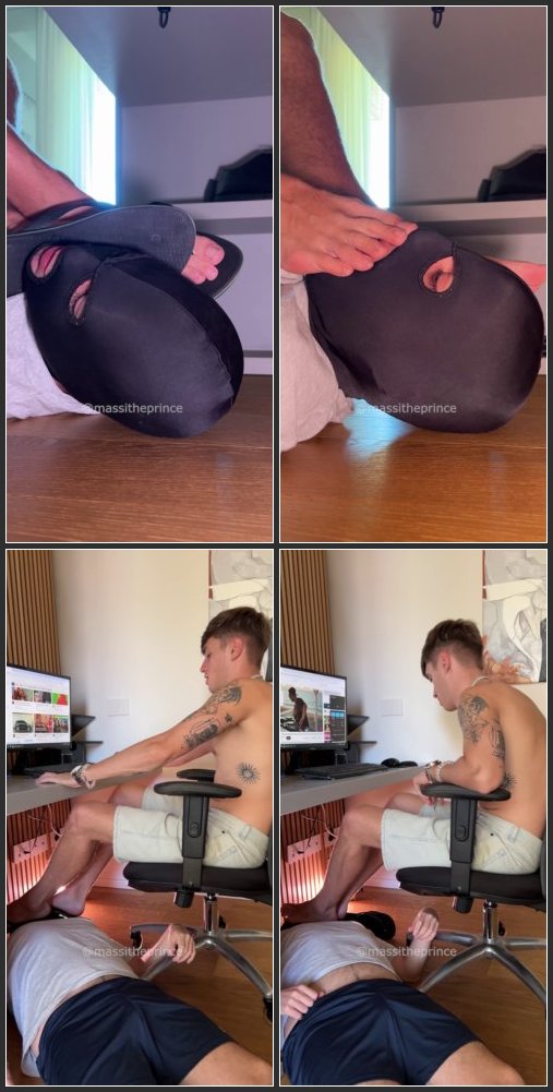 MassiThePrince – Using The Pathetic Human Foostool Under The Desk (Feet, Flip-Flops)