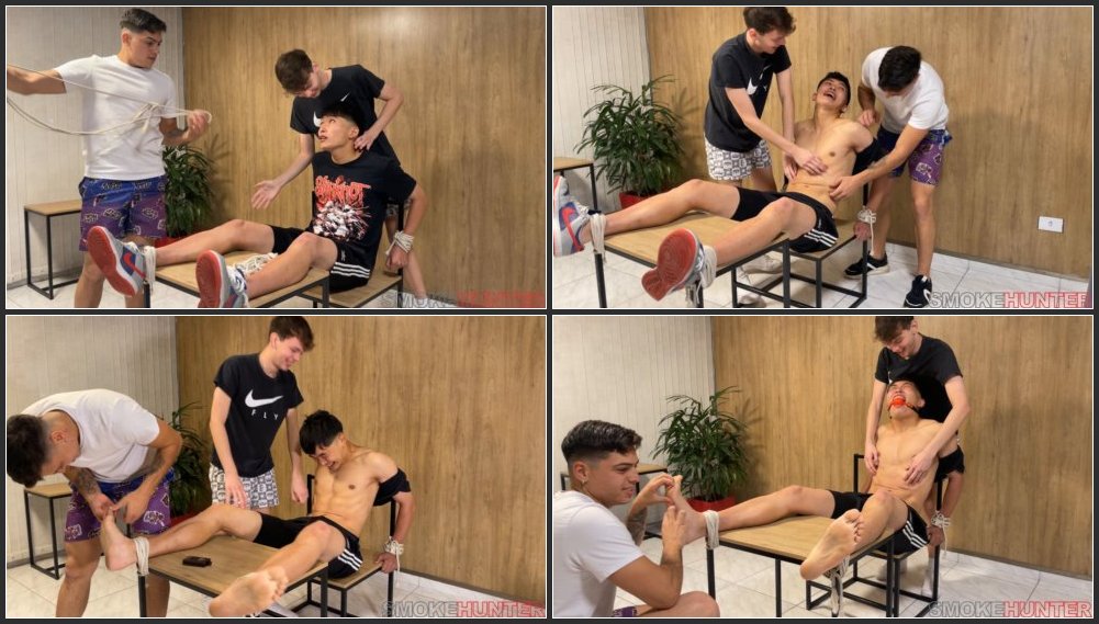 Smoke Hunter – Handgagged Hard Dick Twink Gets Tickled And Covered In Spit