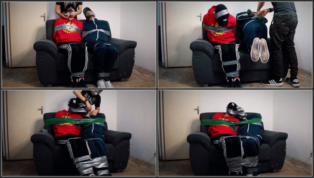 Tonny Tape BR – Sofa – Mauro Roll Taped BondageStrips And Tonny Together (Gay Bondage, Gagged Man)